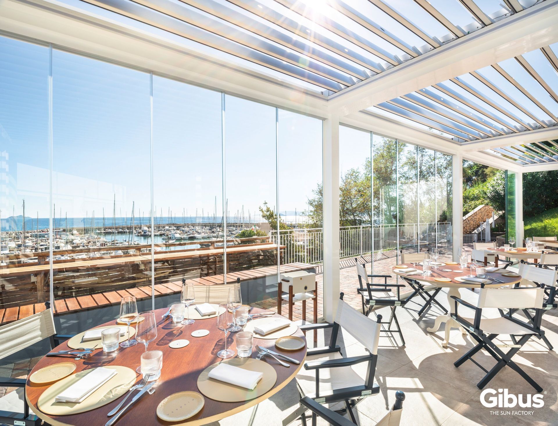 un effetto di trasparenza totale, come se si fosse all’aria aperta, ma con la protezione e il comfort di uno spazio chiuso.